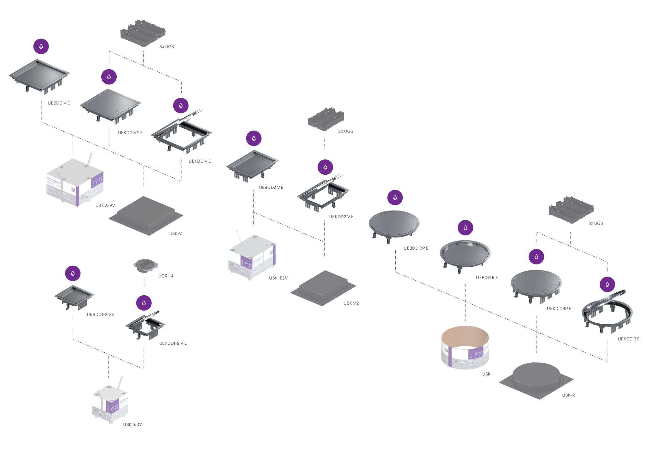 cartridge installation unit,height71 mmminimum installation height90 mmDiameter (mm)330 mmmaximum load2.00 kNmaximum number of installable device casings3fitting dimension round307 mmIP protection level in unused conditionIP 30Depth of flooring recess12 mmWeight per storage unit2.177 kgIncluded accessories - UEBDD 25-R E