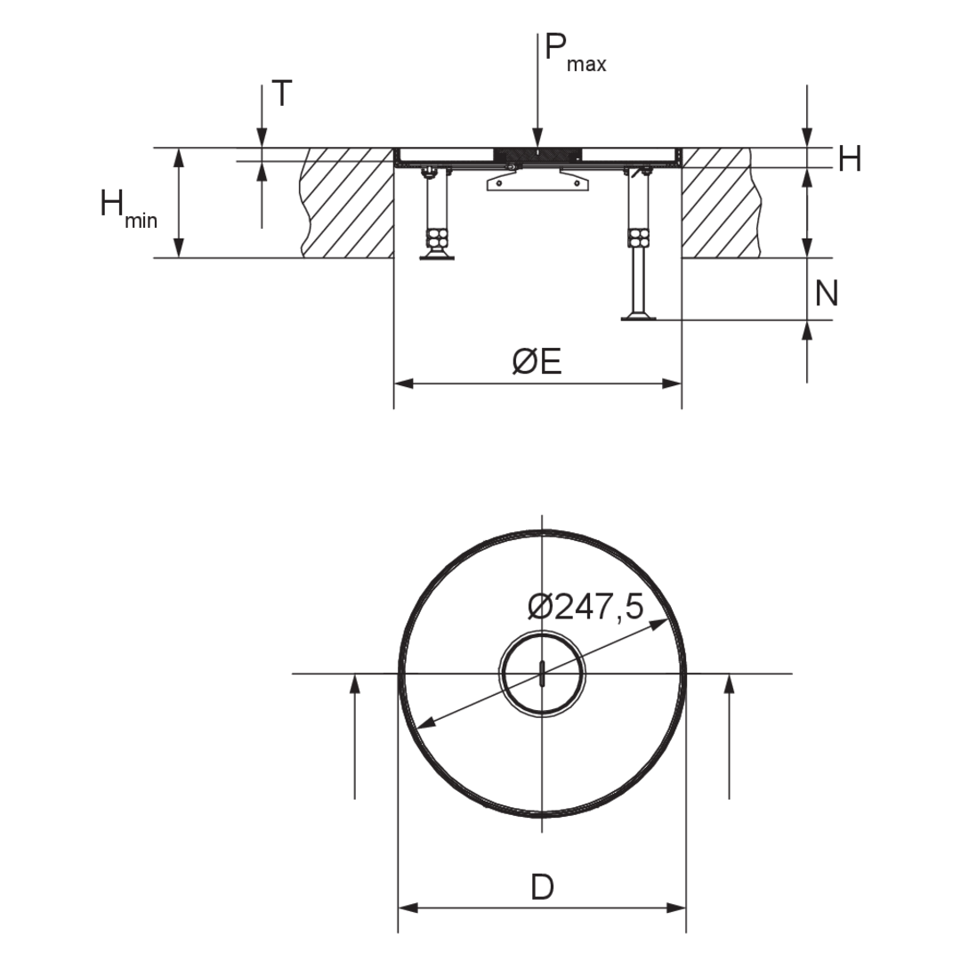 UEBDM2 R WD components are round tube cover units with abutting edges. They can accommodate a maximum of two mounting boxes. They consist of a height-adjustable cartridge mounting frame with a tube outlet cartridge, a bolted mounting kit and a rubber seal. The units are suitable for installation in UBDHB floor sockets, assembly covers and raised or false floor openings in wet-cleaned rooms with office traffic loads. Cassette and frame are made of stainless steel V2A and the mounting set is aluminium. They have an IP protection class of IP 54 in an unused condition, a maximum load capacity of 2 kN, an adjustment range of 55 mm, an installation dimension of 260 mm and a minimum installation height of 100 mm.