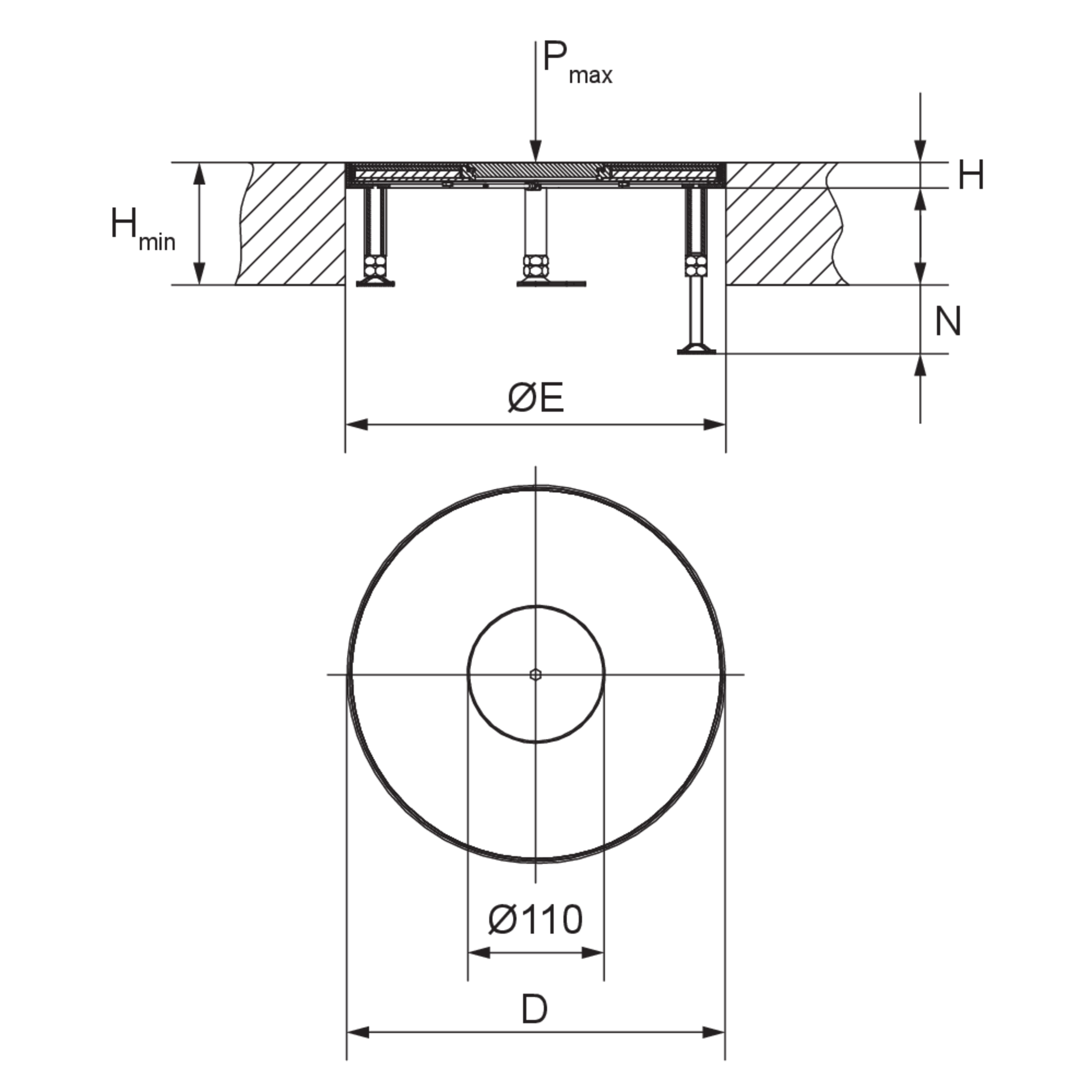UEBDSM RP WD are round heavy-duty tube cover units that accommodate a maximum of three mounting boxes. They consist of a height-adjustable cartridge mounting frame with a tube outlet cartridge, a bolted tube mounting kit and a rubber seal. The units are suitable for installation in UBDHB floor sockets, assembly covers and raised or false floor openings in wet-cleaned rooms with office traffic loads. Both the cartridges and the tube covers and frames are made of stainless steel V2A. The units have an IP protection class of IP 54 in an unused condition. They have a maximum load capacity of 20.00 kN, an adjustment range of 55 mm, an installation dimension of 307 mm and a minimum installation height of 100 mm.