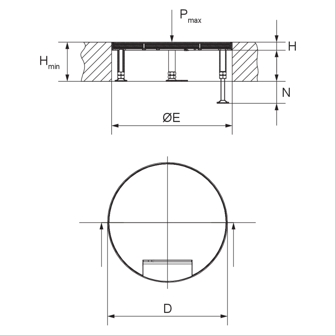 UEKD RP E installation units are round dummy cover units with abutting edges. They can accommodate a maximum of three mounting boxes. They consist of height-adjustable cartridge mounting frames with a dummy insert cartridge and a rubber seal and are suitable for dry-cleaned and wet-cleaned rooms with office traffic loads. They are installed in UBDHB floor sockets, assembly covers and raised or false floor openings. The components are made of stainless steel V2A and have a flat, blasted surface. They have an IP protection class of IP 30 in an unused condition, a max. load capacity of 4.00 kN, a levelling range of 55 mm and installation dimensions of 307 mm.