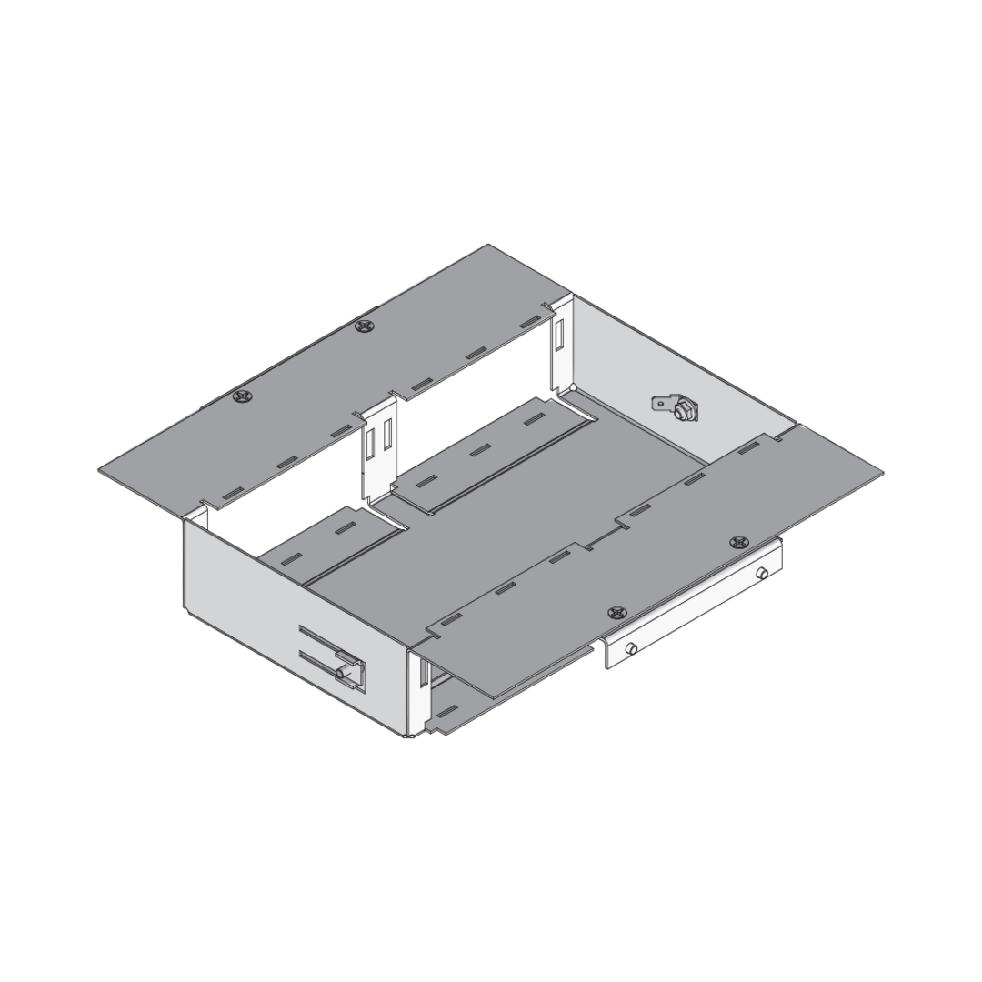 The UGE3 VE components are service outlets with side panels that can be bolted into square stainless steel installation units suitable for up to three mounting boxes. The inserts can be equipped with up to four installation devices measuring 45x45 mm and up to 6 single data jacks. They are made of sendzimir hot-dip galvanised sheet steel in accordance with DIN EN 10346.