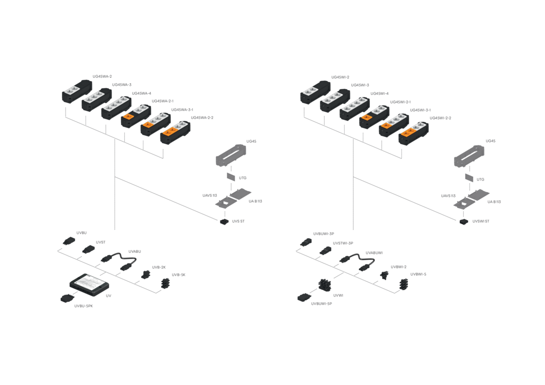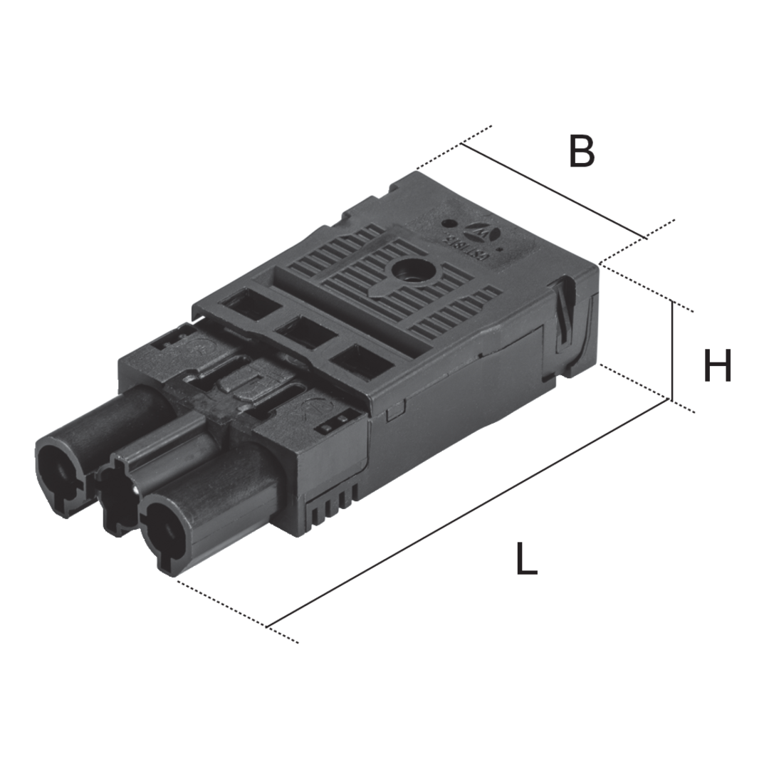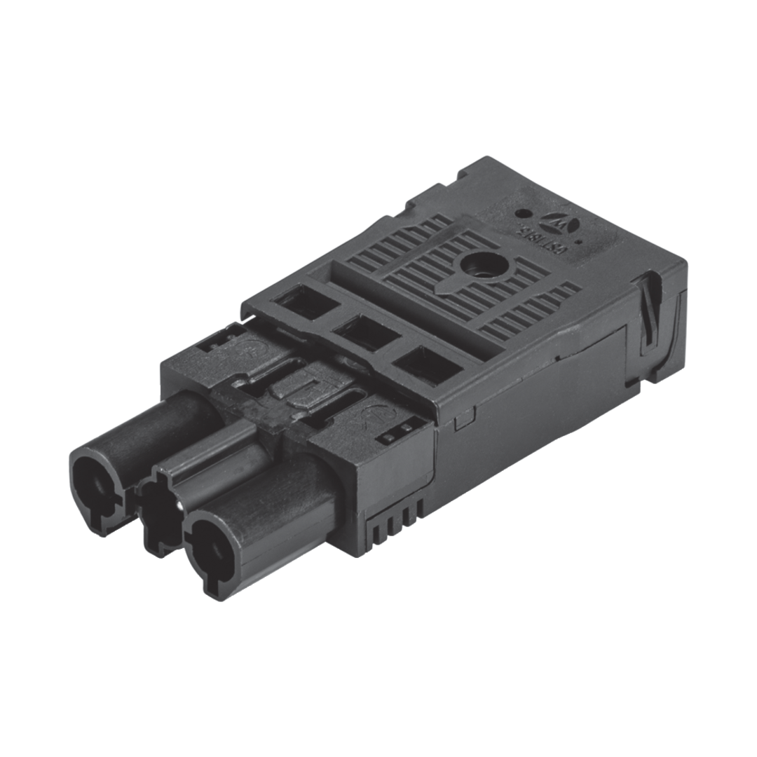UVSTWI-3P components are Wieland connector parts. The plugs have a spring-loaded connection, a strain relief device for solid-wire or fine-stranded conductors with wire end ferrules and a 3-pole output. The solid-wire conductors have a connection cross-section of 1.5 to 2.5 mm², the cross-section of the fine-stranded conductors is 1.5 mm². Suitable for 250 V/4 kV/20 A