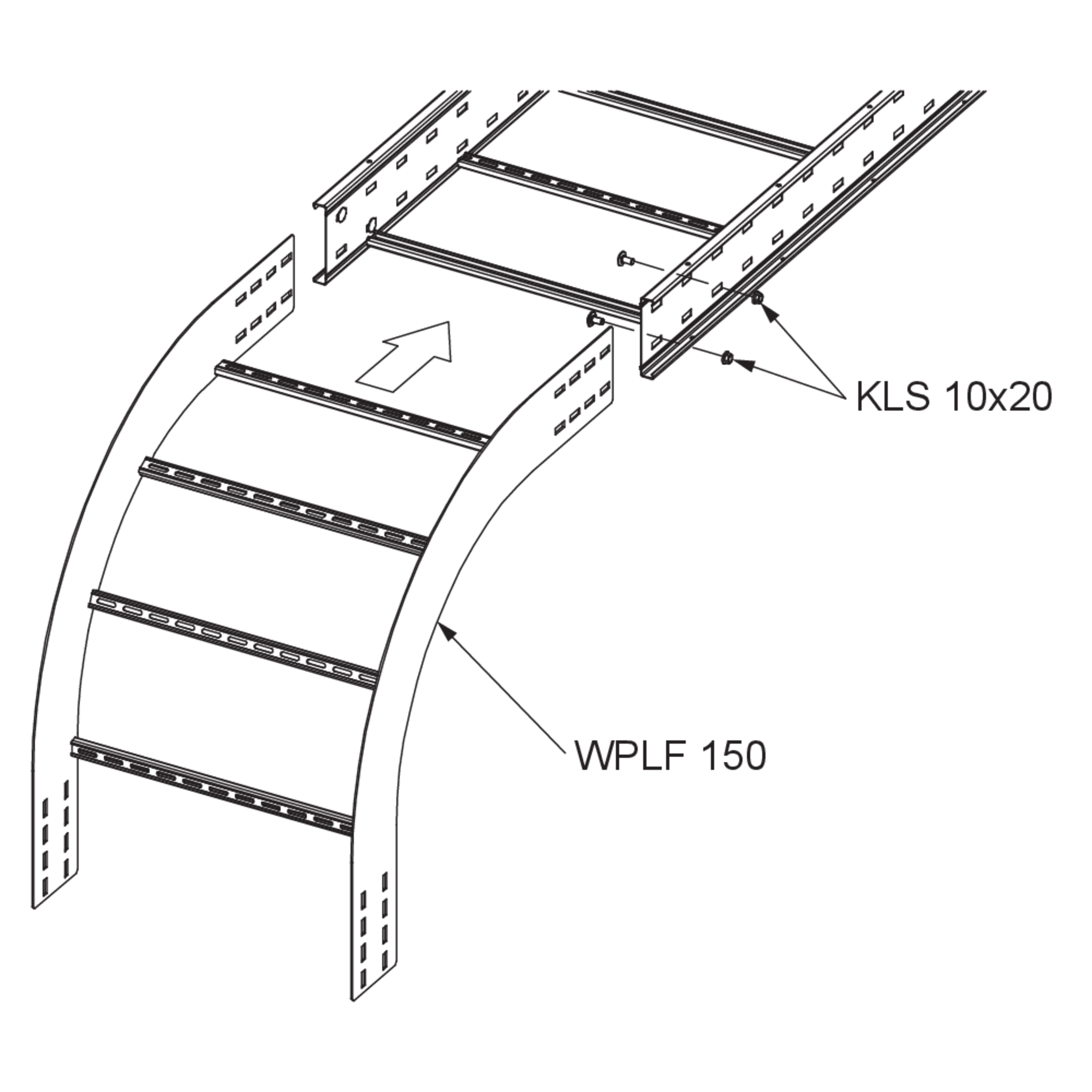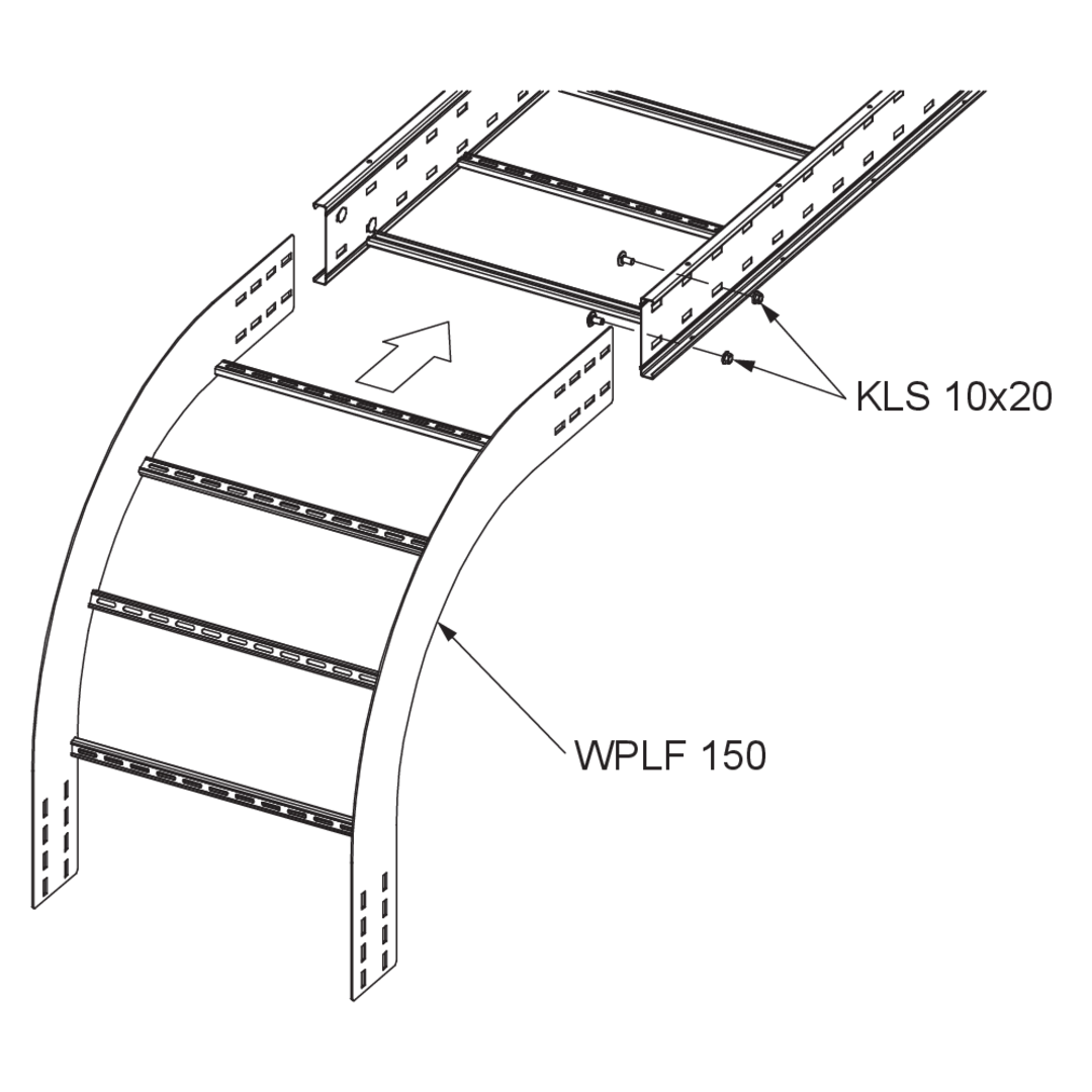Wide-span cable ladder outside riserheight150 mmwidth200 mmradius470 mmDirection changevertically fallingAngle90°Weight per storage unit10.750 kgIncluded accessories - WPLF 150-30F