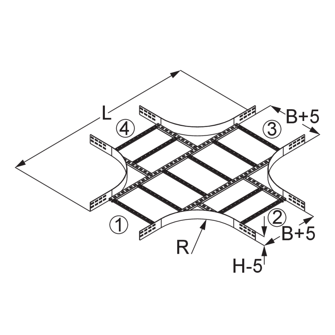Wide-span cable ladder cross-piece WPLKheight100 mmwidth500 mmlength1935 mmradius450 mmWeight per storage unit21.470 kgIncluded accessories - WPLK 100-60E