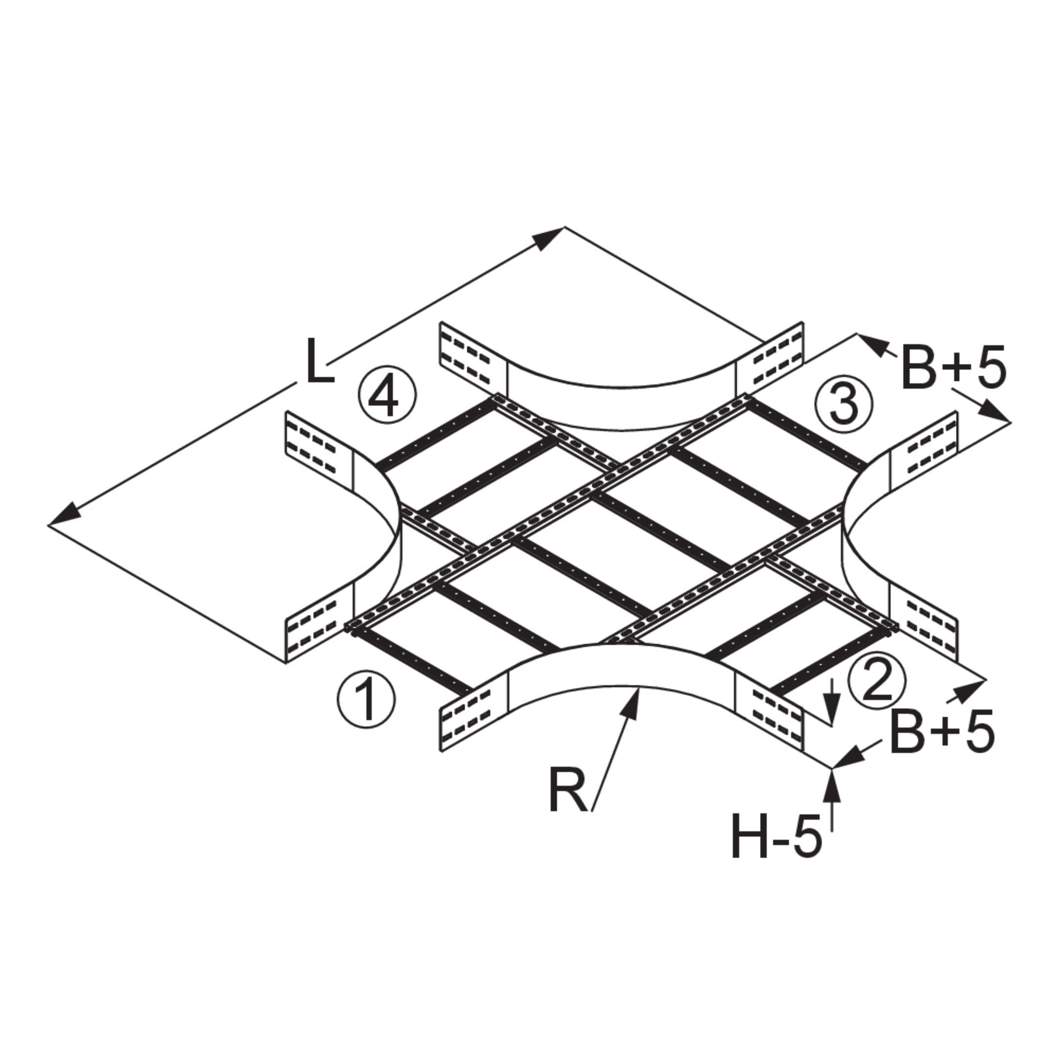 Wide-span cable ladder cross-piece WPLKheight150 mmwidth200 mmlength1635 mmradius450 mmWeight per storage unit24.500 kgIncluded accessories - WPLK 150-30E