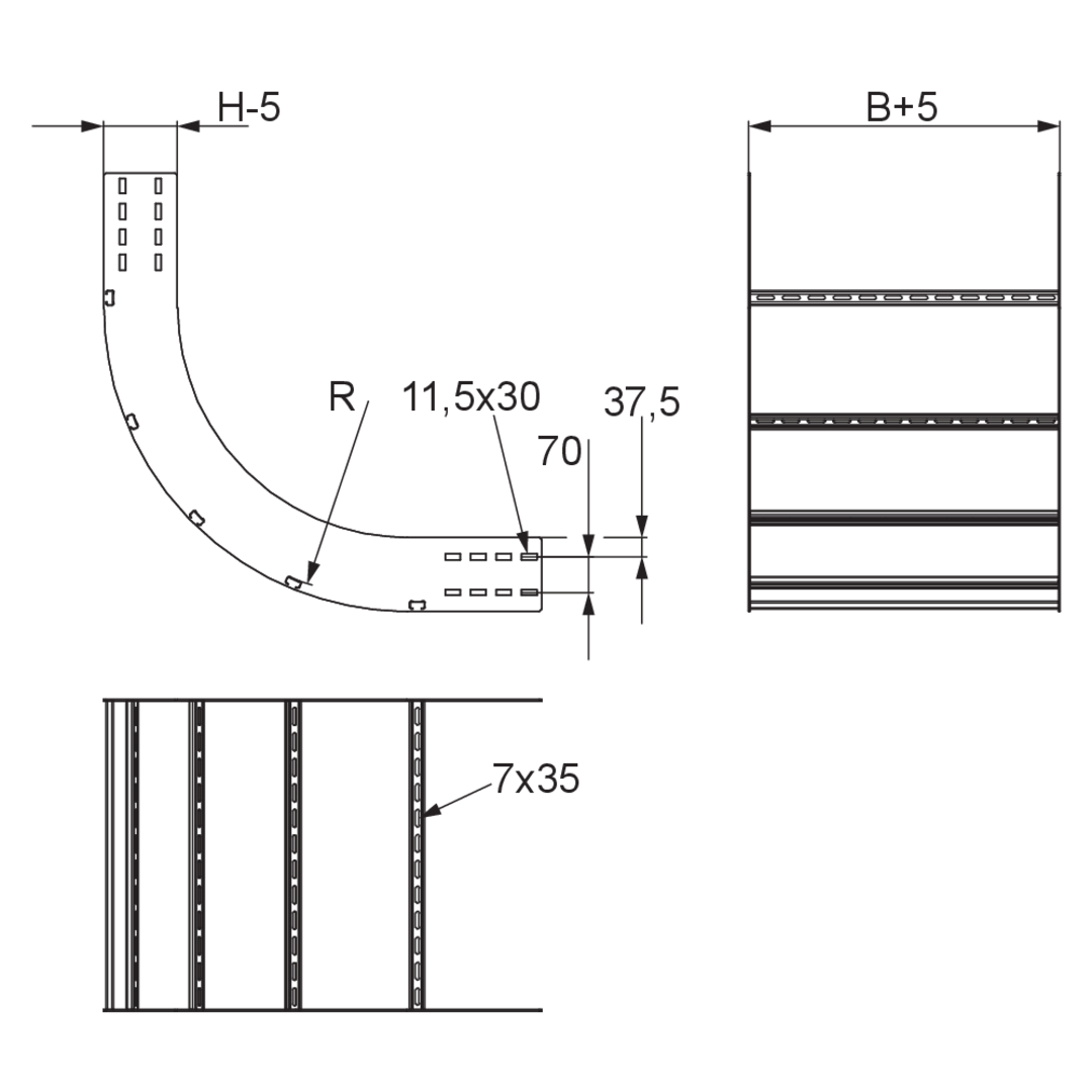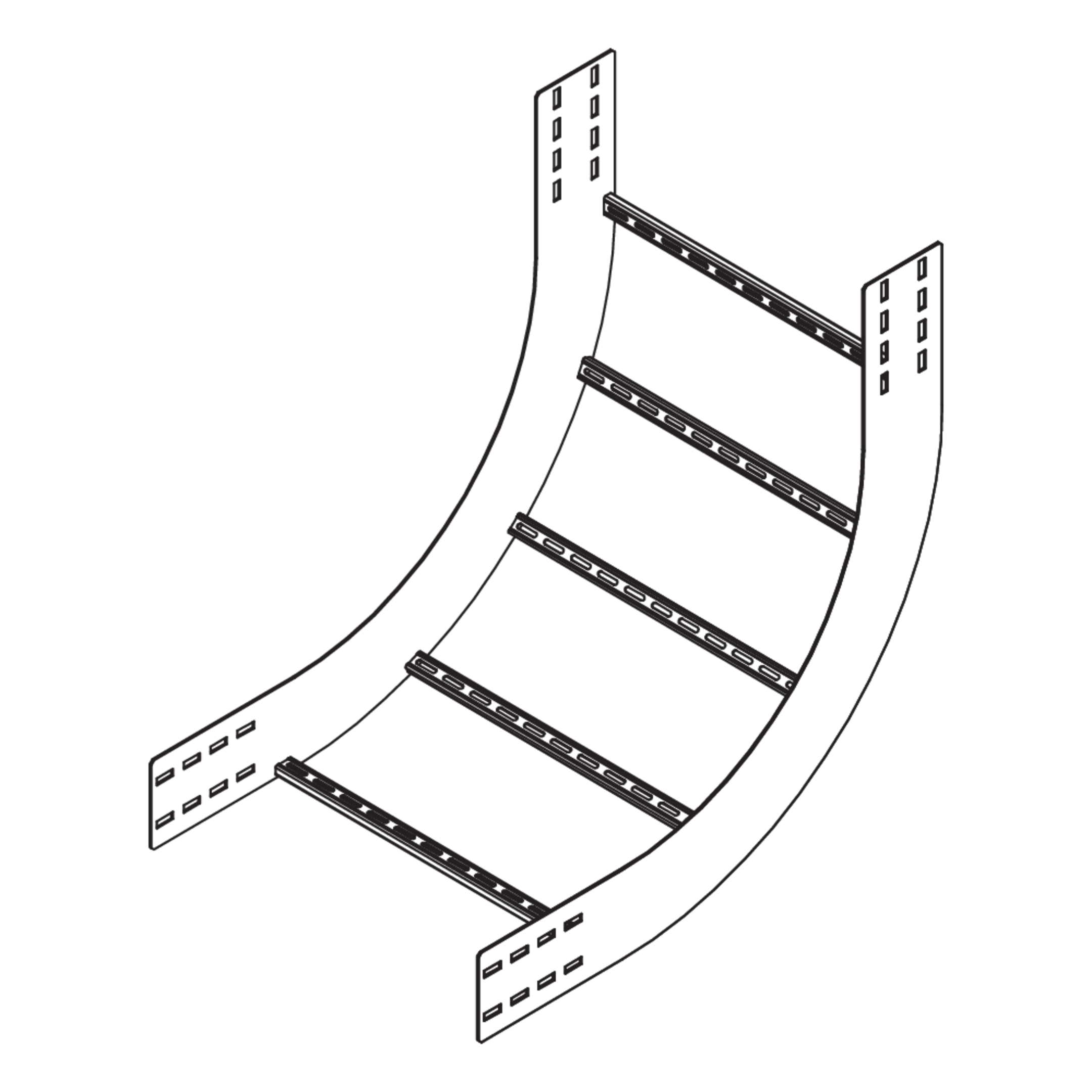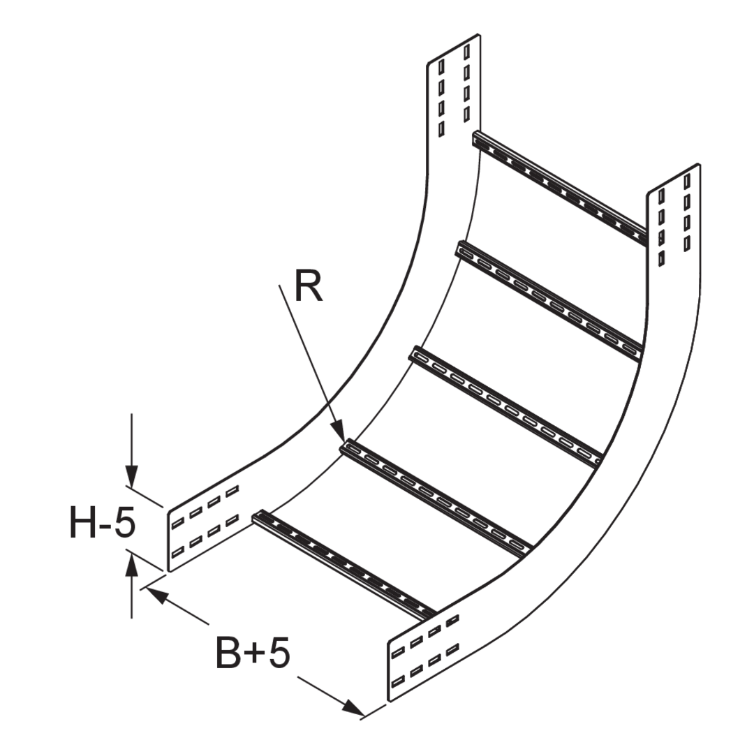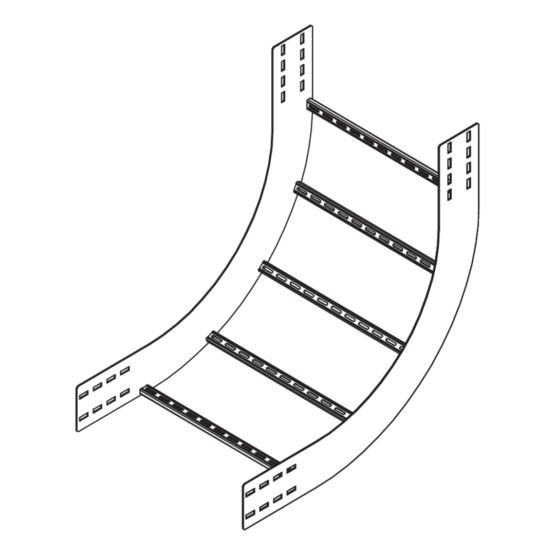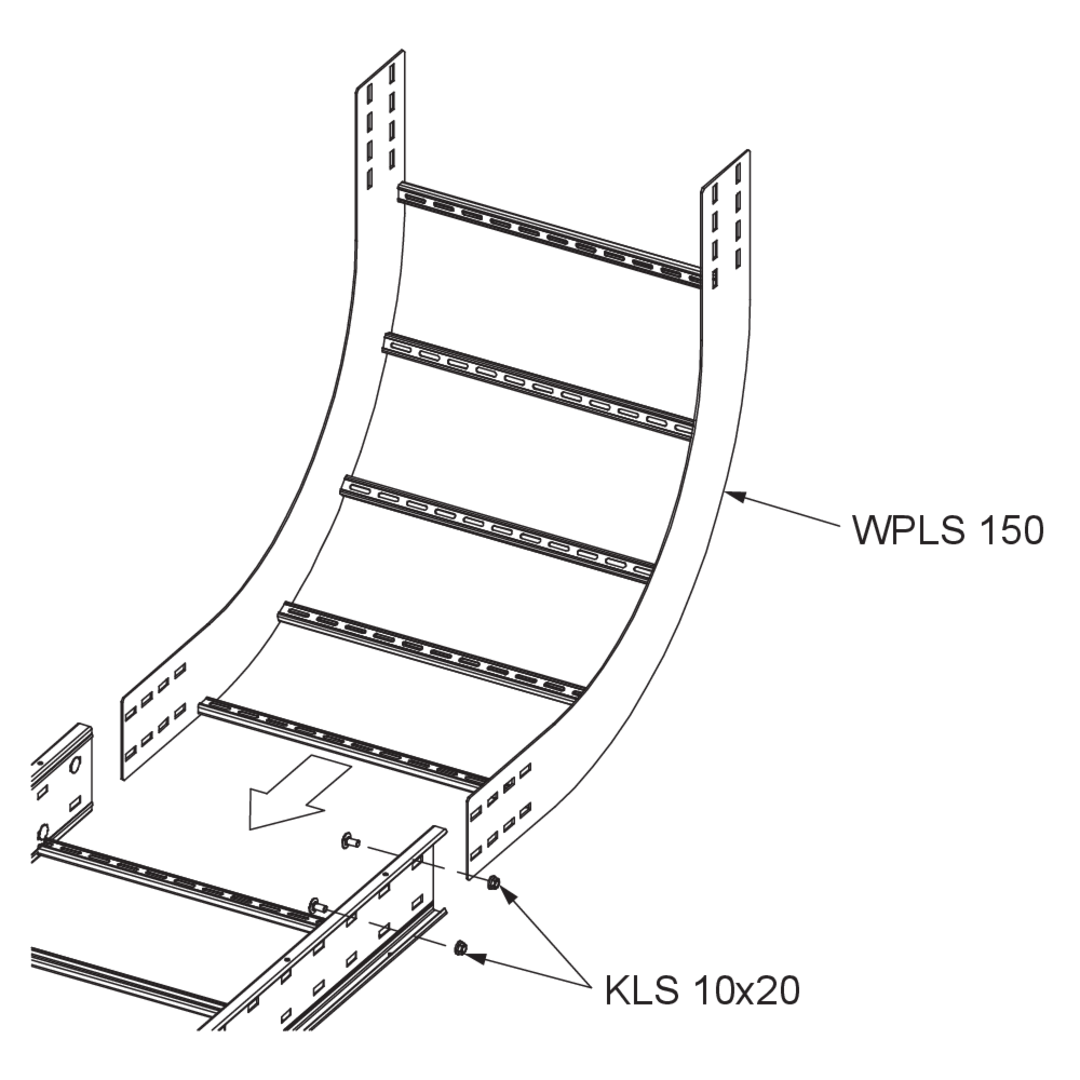 The wide-span floor duct riser WPLS 150 with integrated connectors allows the direction of cable routing to be changed vertically by 90° upwards. It is suitable for wide-span cable ladders with rails 150 mm high and is 200 to 600 mm wide. The riser is pushed into the wide-span cable ladder and then bolted in place. The connecting rack is then mounted on the riser. It has a radius of 575 mm. We provide components in various materials and surface finishes to ensure that various corrosion protection requirements for different areas of application are met.