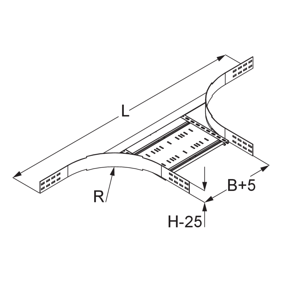 Wide-span cable tray add-on tee, height = 120 mm
