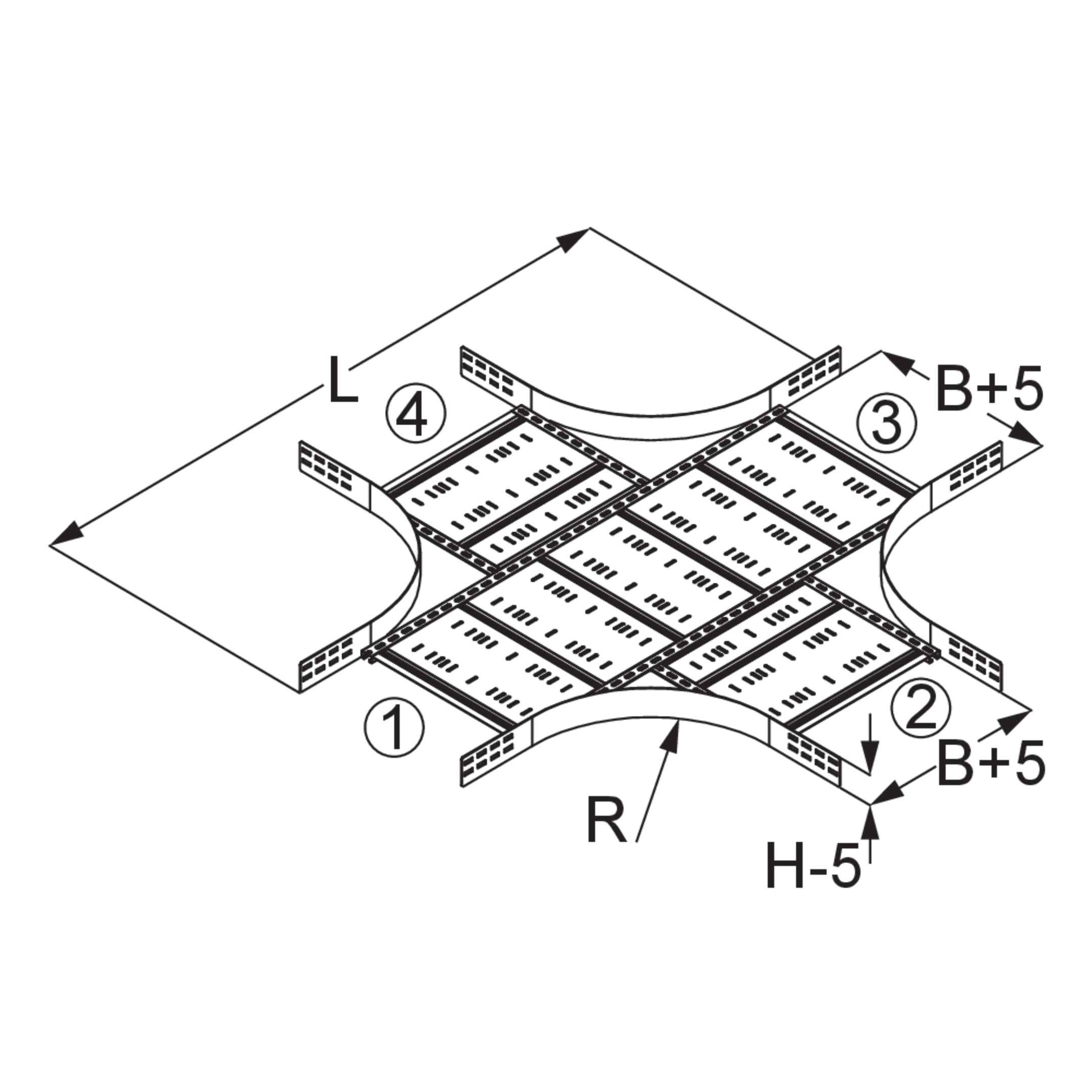 Wide-span cable tray cross-piece WPRKheight100 mmwidth600 mmlength2035 mmradius450 mmWeight per storage unit30.346 kgIncluded accessories