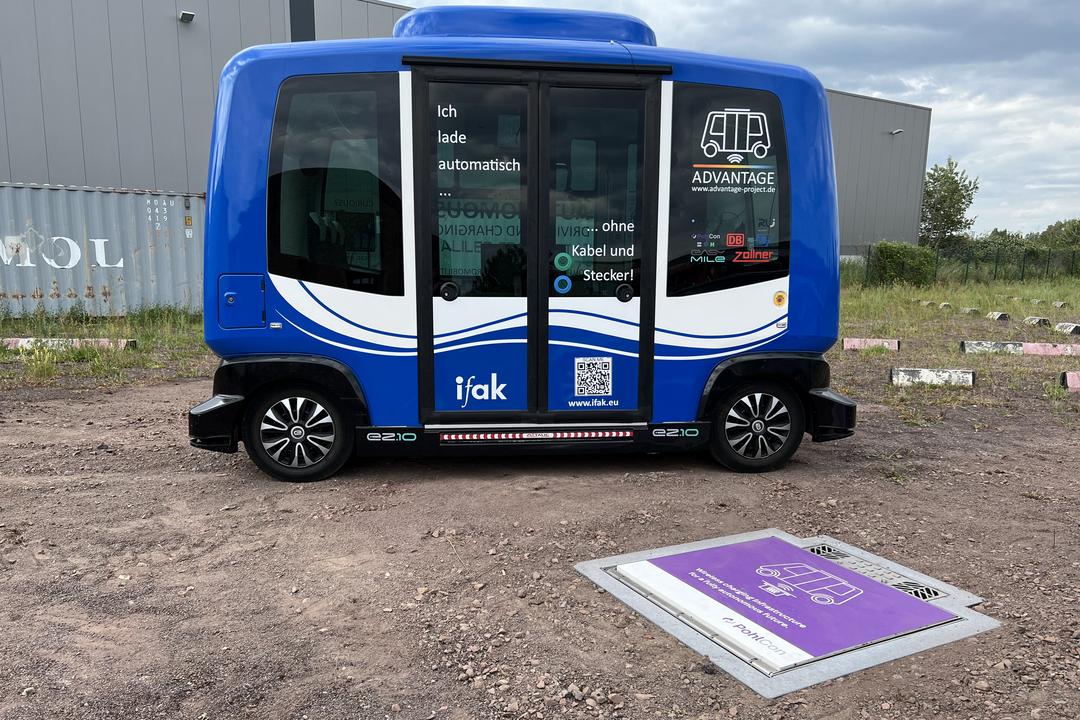 The federally funded ADVANTAGE project, which aims to enable automatic and contactless charging of autonomous public transport shuttles, also took into account a traffic-centric infrastructure concept that is to be implemented flush with the ground at stops. This allows the charging process to be parallelized at stops along the traffic route.