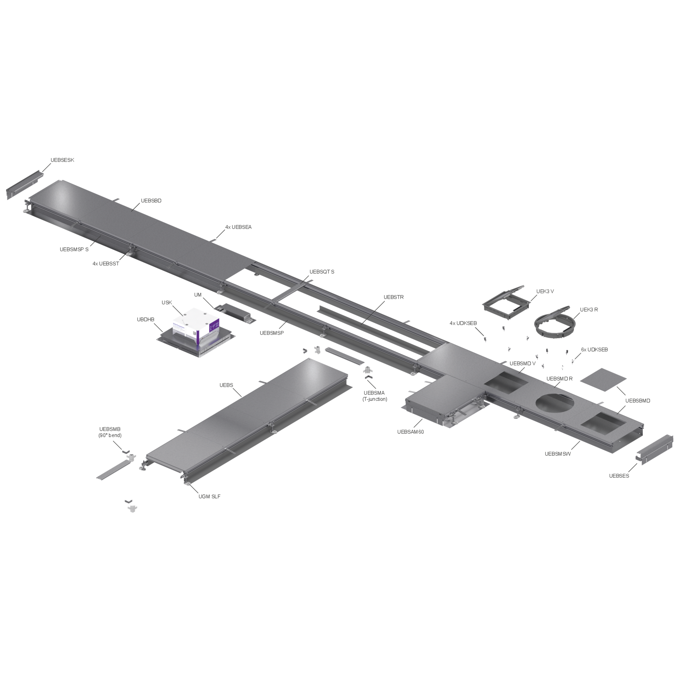 UEBSV products are rotatable corner connectors for screed-flush ducts. The connectors are used in the assembly process to create a formed part. They can be used as internal or external corners depending on how they are positioned. The components are made of polyamide and are 50 or 57 mm high and 28 mm across.